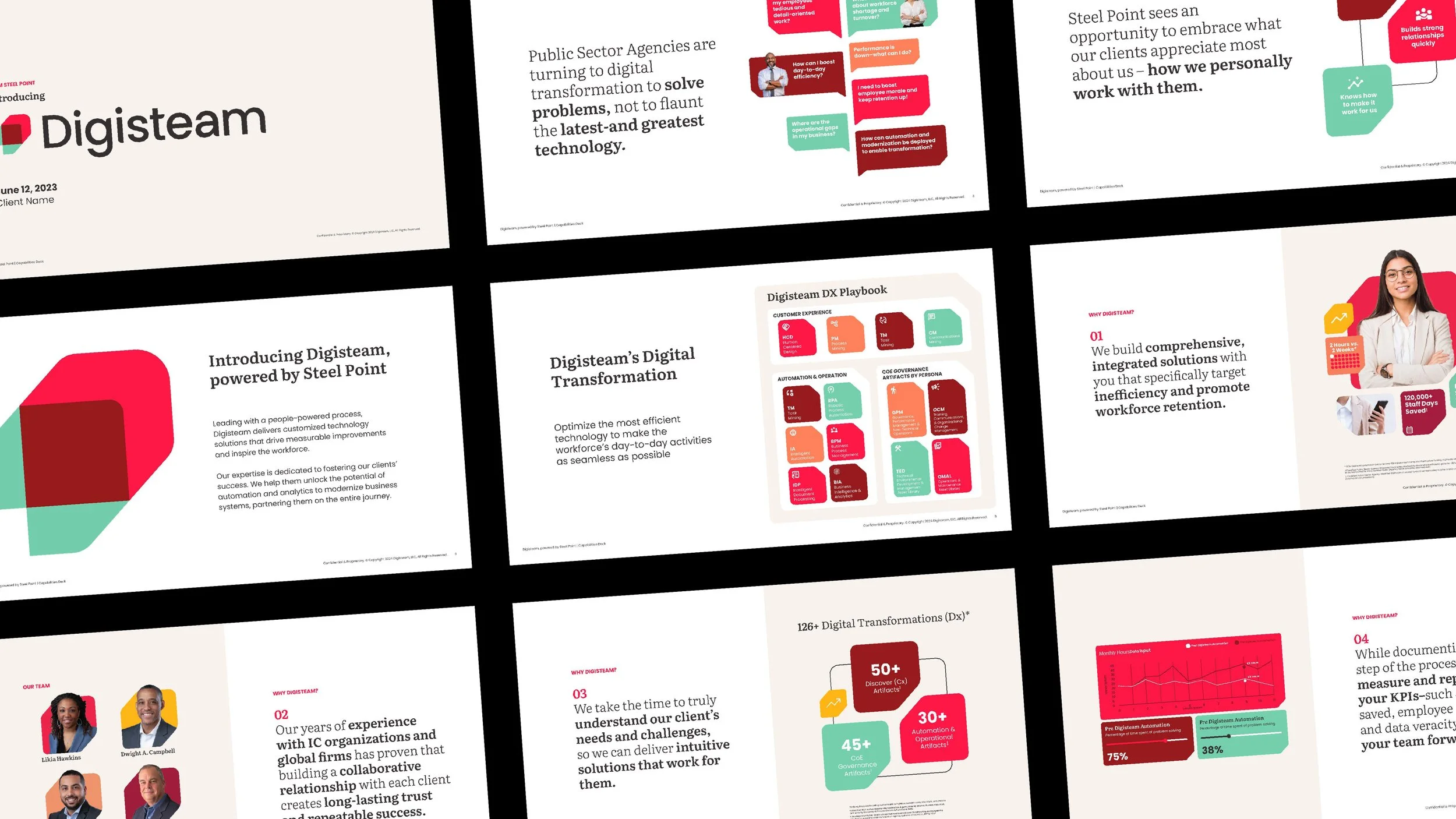 Our solution was to lead with a people-powered process, emphasizing that Digisteam delivers customized technology solutions that drive measurable improvements and inspire the workforce. With expertise is dedicated to fostering client success. We helped Digisteam visually unlock the potential of automation and analytics to modernize business systems, and show their partnership with clients on the entire journey of AI automation.